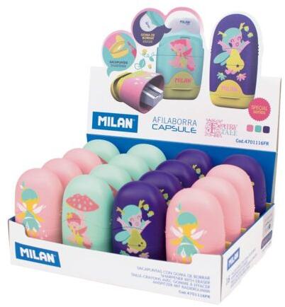 Gumi reszelővel MILA Bubble Mix. Az egyik oldalon kerek gumi, a másik oldalon reszelő található, kiváló minőségű szénacél pengével. Biztonsági pengerendszerrel rendelkezik, amely megakadályozza, hogy a penge elváljon a ceruzahegyező testétől. Alkalmas a grafit ceruzák széles választékához.