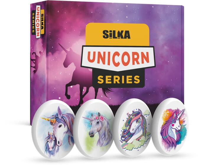 Unikornisos radír műanyag dobozban. Anyaga: TPR (hõre lágyuló gumi), PVC mentes, forgácsmentes. Élelmiszer minõségű festékanyagokkal gyártva. Ideális grafit ceruzavonalak radírozásához. Radír mérete: 58*44*10 mm. 36 db/display