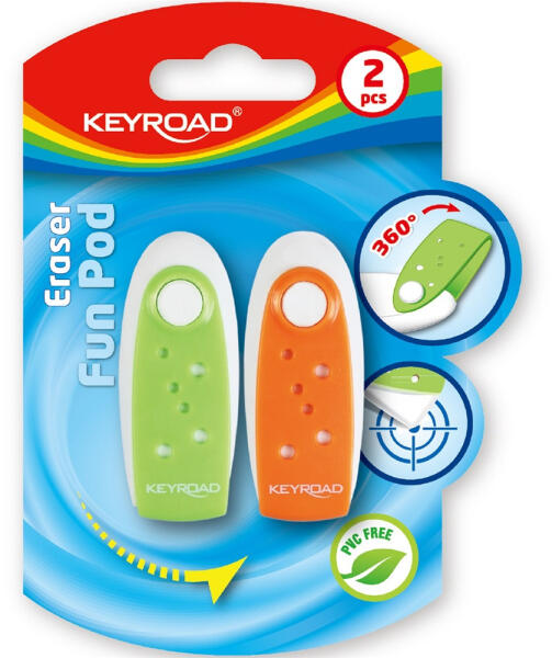 RADÍR PVC MENTES 2DB/BLISZTER KEYROAD FUNPOD VEGYES SZÍNEK Csak bele ne szédüljön a pörgő-forgó tokjába! radír védő tokkal, mely 360° fokban forgatható tiszta és kényelmes használat vegyes színekben (rózsaszín, zöld, narancs), a szín nem választható 2 db/bliszter