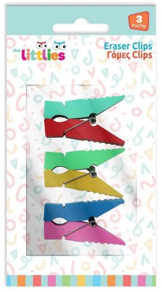The Littlies: Csipesz alakú radír 3db-os szett Hivatalos magyarországi forgalmazótól. Leírás: Fedezd fel ezt az innovatív és stílusos The Littlies csipesz alakú radír szettet, amely praktikus kiegészítő minden íróasztalra vagy iskolatáskára! A csomag három darab színes radírt tartalmaz, melyek csipesz formájúak, így könnyen rögzíthetők a papírokhoz vagy füzetekhez. A