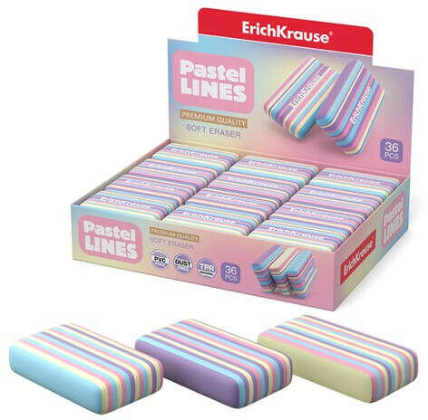 Radír ErichKrause Pastel Linespuha radír környezetbarát és hipoallergén termoplasztikus gumiból (TPR) PVC mentes, pormentes vegyes színek (a szín nem választható)