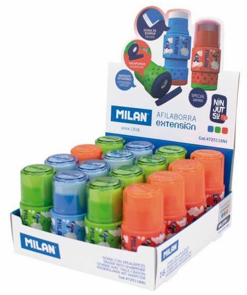 MILAN márkájú praktikus és mutatós hegyező és radír egyben különleges ninja mintával, így a fiúk kedvence lesz. A radír része rugalmas, puha szintetikus gumi radír. A hegyező éles és ellenálló acél pengével rendelkezik. Biztonsági pengerendszer, amely megakádolyozza, hogy a penge leváljon a ceruzahegyező testéről. Ideális iskolai használatra. 3 színben elérhető (k