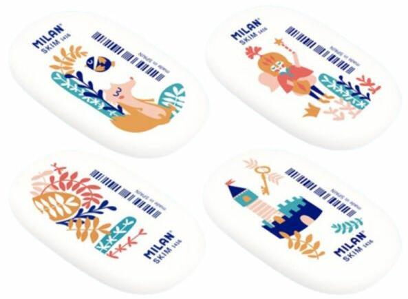 Mese, mese, mátka... egy radíron?A Milan Story Time radírja nemcsak azért különleges, mert a segítségével ripsz-ropsz eltüntethetők a papíron ejtett hibák, hanem azért is, mert igényesen kidolgozott mesemotívumokkal díszített. Az ovális alakú radír puha, rugalmas szintetikus gumiból készült használatával maszatmentesen tüntethetők el az elírások, felesleges vonalak sz