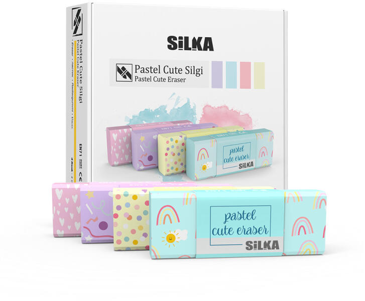 RADÍR, CUKI, PASZTELL, 20 DB/DISPLAY SILKA Pasztell színű, cuki mintás radír papír tokban. Hőre lágyuló gumiból készült, PVC és forgácsmentes. Élelmiszer minőségű festékanyagokkal gyártva. Ideális grafitceruza vonalak radírozásához. Radír mérete: 59,5x22x11 mm, 20 db/display Katalóguskód: 55691