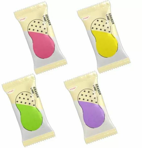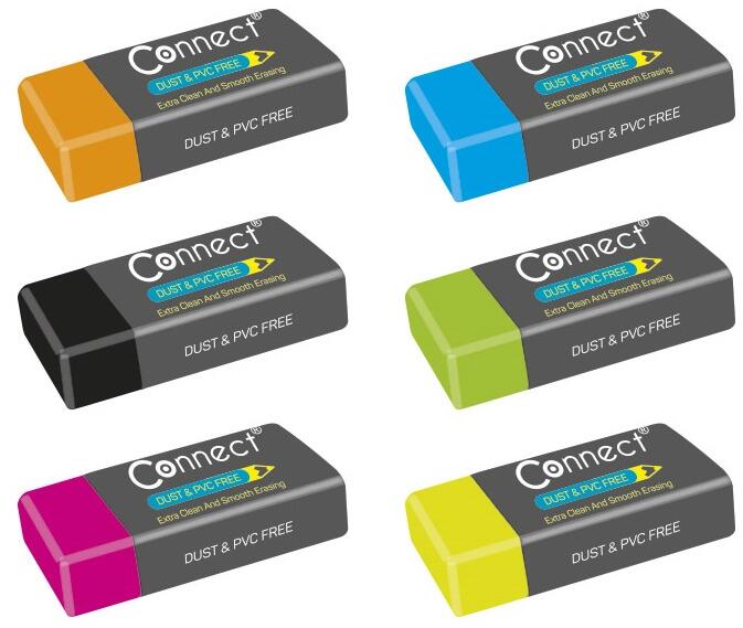 Szintetikus radír 6 különböző színben: fekete, rózsaszín, narancs, kék, zöld, sárga. PVC mentes. Forgács mentes. 36 db/kínáló doboz. Katalóguskód: 23328