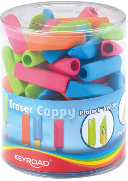 RADÍR PVC MENTES 72DB/DISPLAY KEYROAD CAPPY VEGYES SZÍNEK 2 az 1-ben funkció. Minden ceruzahegy biztonságban, és még külön radírra sincs szükség melléjük. PVC mentes vegyes színekben (rózsaszín, zöld, kék, narancs), a szín nem választható 72 db/display