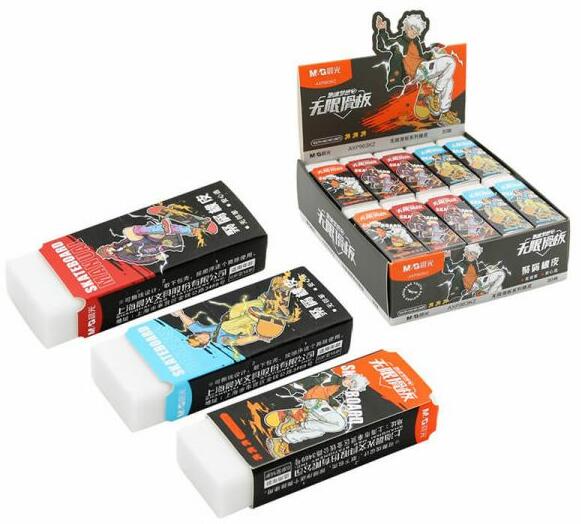 M&G márkájú radír vagány fiús mintájú gördeszkás papírtokban. A téglalap alakú radír kényelmesen megfogható, jól lehet vele radírozni. Maszatmentes, PVC nem tartalmaz. Mérete: 5,5x1x2 cm. Kényelmesen elfér a tolltartóban. Többféle mintával, az ár 1 darabra vonatkozik. Tetszőlegesen küldjük.