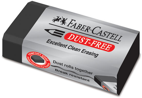 Faber-Castell Radír, fekete, forgácsmentes Tiszta és elkenődésmentes radírozás (az egyedülálló Dust-Free formula puhává teszi a radírt és garantálja a tiszta és maszatmentes radírozást) A radírmaradvány és a por könnyen összecsúszik a könnyebb takarítás érdekében Nem tartalmaz káros lágyítószert - ftalátot A kényelmi élek (lekerekített sarkok) átgondoltan kido