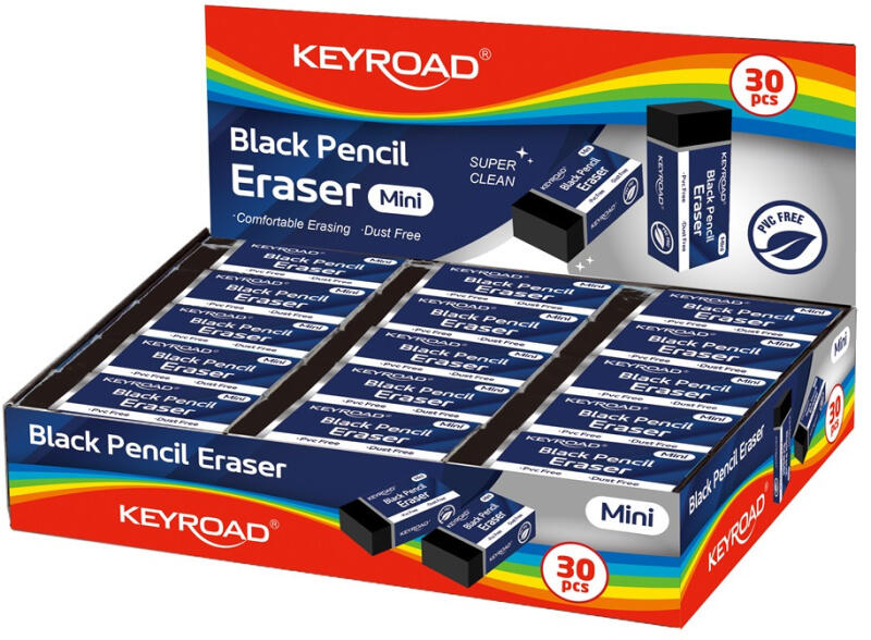 RADÍR, 30 DB/DISPLAY, KEYROAD TEC BLACK, FEKETE A fekete az új fehér! pormentes, puha, fekete radír kisméretű PVC mentes tiszta és kényelmes radírozási élményt nyújt 30 db/display