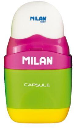 Kombinált radír és reszelő MILAN Capusle Mix edénnyel egyben. A gumi a fedél alatt van elrejtve. Éles, strapabíró karbon reszelőpenge, olyan rendszerrel, amely megakadályozza a penge leválasztását a reszelő testéről. Ideális iskolásoknak és diákoknak. A gumi ezenkívül MILAN 1012 gumira cserélhető.