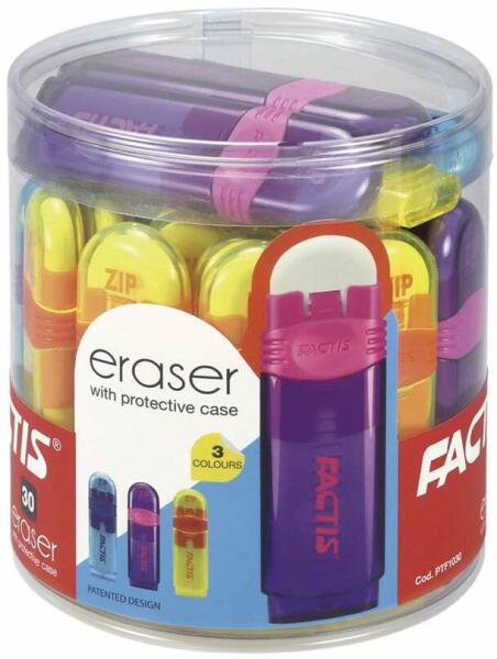 Radír Factis színes átlátszó műanyag tokban kupakkal 1 db sárga Radír Factis színes átlátszó műanyag tokban kupakkal 1 db sárga. A Factis radír színes átlátszó műanyag tokban van mely kinézetét tekintve pendrive-hoz hasonlít. A műanyag tok teteje és alja is levehető, illetve visszatehető, ha éppen nem használjuk. Visszazárva megvédi a radírt a különböző szennyez