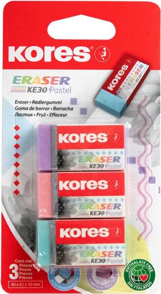 Extra puha és hatékony radír. Pormentes radírozás. Használatakor nem hagy radírszemetet. Tiszta és maszatolásmentes törlés. PVC mentes. 1 doboz/30 db
