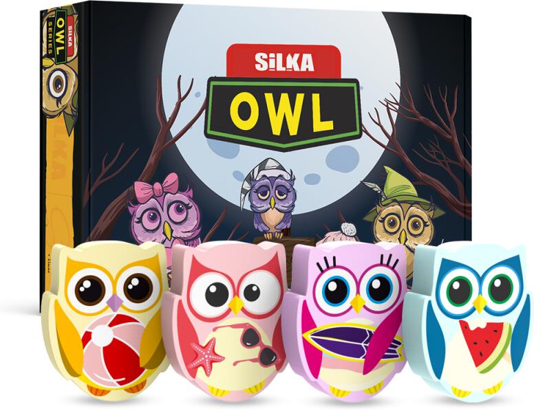 Baglyos radír műanyag dobozban. Anyaga: TPR (hõre lágyuló gumi), PVC mentes, forgácsmentes. Élelmiszer minõségű festékanyagokkal gyártva. Ideális grafit ceruzavonalak radírozásához. Radír mérete: 39*30,5*9 mm. 36 db/display