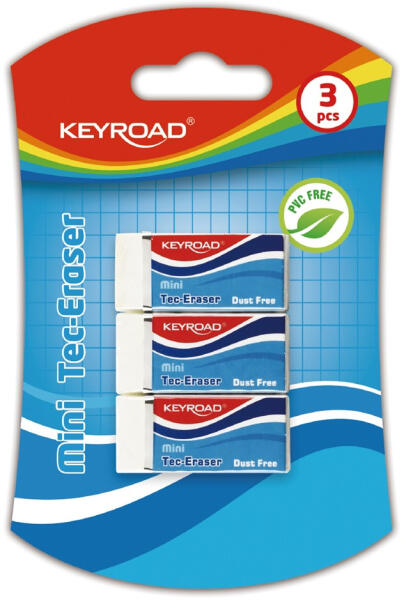 RADÍR PVC MENTES 3DB/BLISZTER KEYROAD TECERASER Hagyományos és többféle kiszerelésű, a tradíciók kedvelőinek. pormentes, tiszta radírozás kényelmes PVC mentes 3 db/bliszter