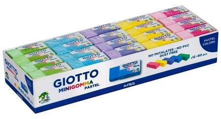 Radír Giotto Mini Gomma. Mérete: 3,8x1,5x1,6 cm. Por, - ftalát, - és PVC mentes. Egyedileg csomagolva EAN számmal ellátva. 5 pasztell (rózsaszín, levendula, világoskék, sárga, zöld)
