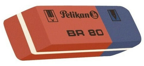 Termékjellemzők: - Kék/piros radír. - BR80-as kombinált gumi radír. - 2/3 része grafitceruzákhoz, 1/3 része tintás és golyóstollakhoz valamint színes ceruzákhoz. - Mindenféle felszínre. - Mérete: 41 x 14 x 8 mm.
