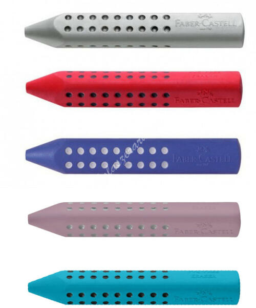 Faber-Castell Grip radír , mely vastag háromszög formájának köszönhetően kényelmes fogású. 4 különböző színben A "Választható színek"-re kattintva tudsz színt választani.