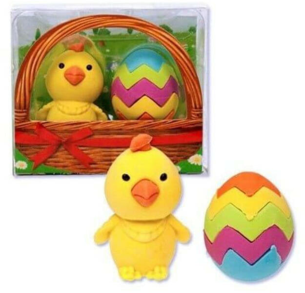 Radír Csibe tojással, 2db/csomag. Csomagolás mérete: 6,5cm x 2,5cm x 5,6cm. Az ár 1 szettre vonatkozik.