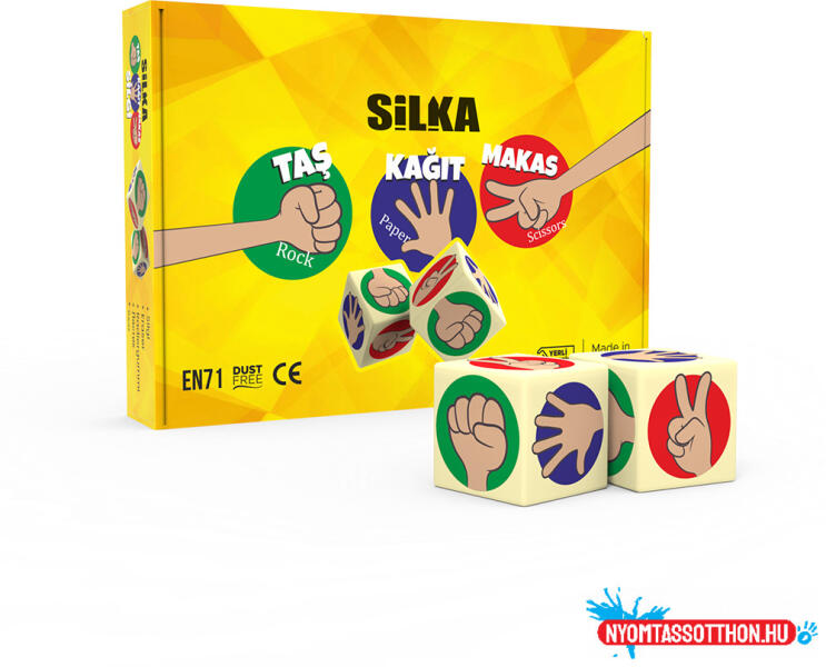 Radír, kő-papír-olló, 12 db/display, Silka Kő-papír-olló radír műanyag dobozban. Egy csomagban 2 radír van, így egymás elleni dobással lehet játszani a radírral. Anyaga: TPR (hőre lágyuló gumi), PVC mentes, forgácsmentes. Élelmiszer minőségű festékanyagokkal gyártva. Ideális grafit ceruzavonalak radírozásához. 1 db radír mérete: 25*25*25 mm. Ebből van 2 db a csomago