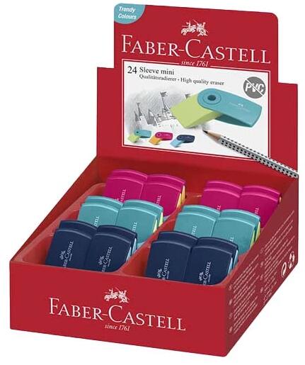 Mini radír, műanyag tokban. A tokból kifordítható. A műanyag toknak köszönhetően nem koszolódik. Tiszta, maszatolásmentes törlés. PVC mentes. Vegyes színek. 24 db/ doboz
