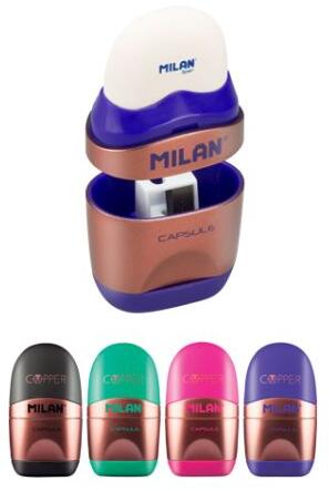 Kombinált radír és reszelő MILAN Capusle Copper tárral egyben. A gumi a fedél alatt van elrejtve. Éles, strapabíró karbon reszelőlap, olyan rendszerrel, amely megakadályozza a penge leválasztását a reszelő testéről. Ideális iskolásoknak és diákoknak. Több színben kapható: fekete, rózsaszín, lila, zöld.