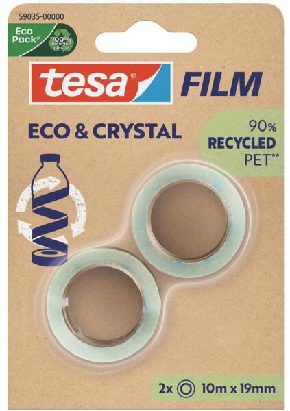 Bemutatjuk a tesafilm® Eco & Crystal szalagot, amely a klasszikus tesafilm® jól ismert tulajdonságait ötvözi a környezetbarát jellemzőkkel. Rendkívül átlátszó, sokoldalú, erős, oldószermentes ragasztóval, és 90%-ban PET-palackok újrahasznosításából származó műanyagból készült hordozóanyaggal. Ezenkívül a tekercs magja 100%-ban újrahasznosított műanyagból k