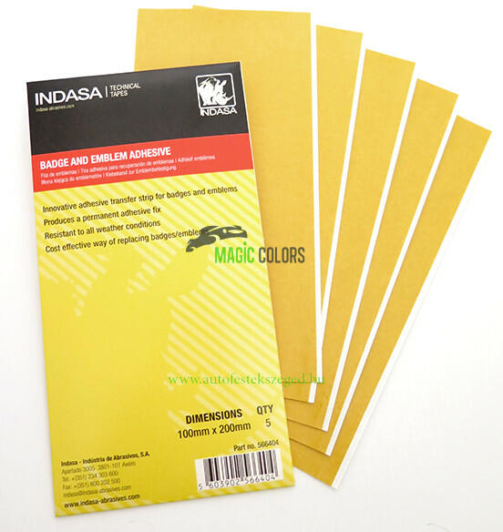 Indasa kétoldalas emblémaragasztó, amely időjárás- és UV-álló kötést biztosít logók és emblémák hosszú távú rögzítéséhez. Indasa Kétoldalas Emblémaragasztó 5 db (100 x 200 mm) Az Indasa kétoldalas emblémaragasztó ideális logók és emblémák tartós rögzítésére. Kiváló tapadást biztosít, ellenáll az időjárás viszontagságainak és az UV sugárzásnak, íg