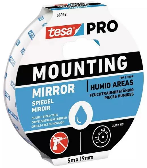 Tesa® PRO 66952 nedvességnek ellenálló fehér színű tükörragasztó szalag. Méret: 5 m hosszú, 19 mm széles Termék leírása: A Tesa PRO tükörrögzítő szalag ideális megoldás fúrás nélküli rögzítéshez. Ez a ragasztó szalag megbízható tartást biztosít még pár