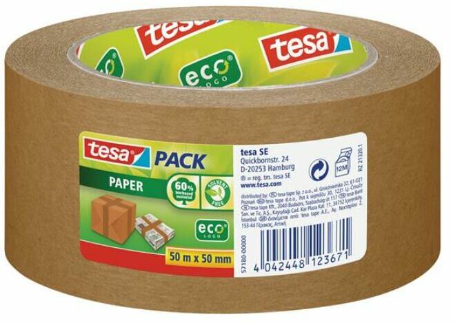 Az erős és környezetbarát tesa ® papír csomagolószalag azonos anyagú kartonok, dobozok, borítékok lezárásához. A 60% bioalapú csomagolószalag megfelel minden kapható tesapack ® kézi adagolóhoz.