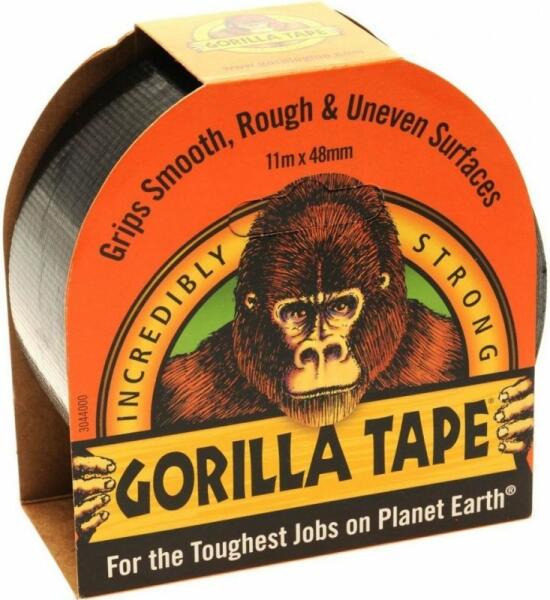 Széles, fekete színű ragasztószalag a legkeményebb munkákhoz, 11 méteres változat Hőálló, 4.8 cm széles ragasztó, amely nemcsak sima, hanem durva és egyenetlen felületeken is megtapad. Szerteágazó felhasználási területekre (pl. foltok elfedése, felfújható matracok javítása stb. ) Hossza: 11 méter. Gorilla Tape ragasztószalag „A földkerekség legkeményebb munkáihoz A