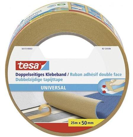A tesa® univerzális kétoldalas szalag egy öntapadó padlószőnyeg ragasztó. Számos más alkalmazáshoz is megfelelő, például szőnyegek rögzítése, kézműveskedés és dekorálás. Ez a sokoldalú szalag sokféle szilárd, sík és sima felületű anyagon képes tapadni. A gyors és könnyű rögzítés érdekében kézzel könnyen téphető, melynek köszönhetően ideális kétoldal