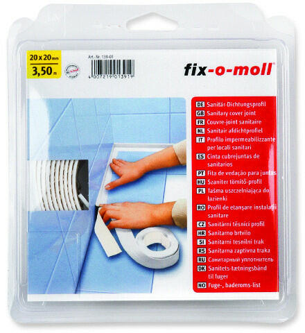 Fix-o-moll szilikon tömítőszalag, öntapadó Kádak, tusolók és mosdók illesztéseihez. Használata alaposan megtisztított, zsírtalanított, száraz, sima felületeken. Szín: fehér Hosszúság: 3,5 m Szélesség: 40 mm