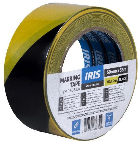 Iris fekete-sárga 50mmx33m padlójelölő szalag PVC padlójelölő szalag, mely felhívja a figyelmet az akadályokra Hatékony, gyors és egyszerű jelölést tesz lehetővé