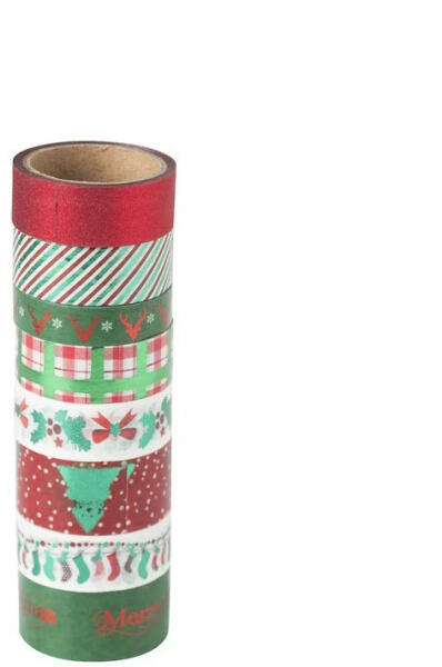 Washi tape Karácsony 3 mtr, 8 db - zöld-piros A Washi tape Karácsony - zöld-piros készlet darabjaival díszíthetsz, feldobhatod a karácsonyi csomagolás megjelenését. Naplódat, Scrapbookodat vagy bármilyen más kézműves alkotásodat is különlegessé teheted a zöld-piros színű washi tape -ekkel. A készletben 8 db karácsonyi washi tape -et találsz, mindegyik 3 méter hosszú. A