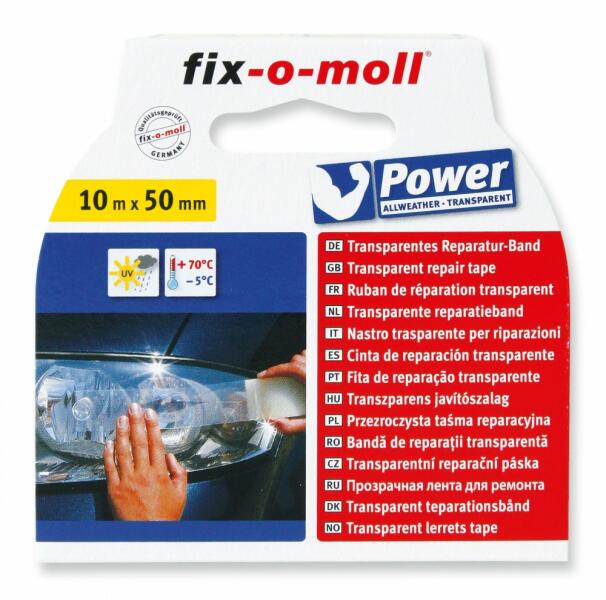 Fix-o-moll „Power időjárásálló átlátszó ragasztószalag Átlátszó, műanyaghoz és üveghez. Szinte láthatatlan, jól ragad. Szín: átlátszó Hosszúság: 10 m Szélesség: 50 mm