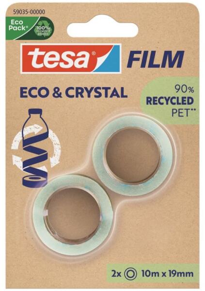 Bemutatjuk a tesafilm® Eco & Crystal szalagot, amely a klasszikus tesafilm® jól ismert tulajdonságait ötvözi a környezetbarát jellemzõkkel. Rendkívül átlátszó, sokoldalú, erõs, oldószermentes ragasztóval, és 90%-ban PET-palackok újrahasznosításából származó műanyagból készült hordozóanyaggal. Ezenkívül a tekercs magja 100%-ban újrahasznosított műanyagból k