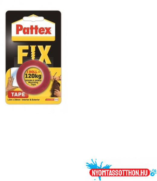 Ragasztószalag kétoldalas, 19mmx1,5 m, Henkel Patex Fix 120 kg Nincs szükség ollóra, a Pattex Power Tape kézzel egyszerűen téphető! A Pattex Power Tape 1001 felhasználási lehetőséget kínál bel- és kültéren egyaránt és egyúttal extra erős, víz- és időjárásálló és 4 bar víznyomásnak is ellenáll. A Pattex Power Tape ezüst, fekete, fehér és átlátszó színekben ka
