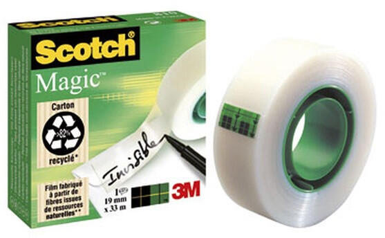 Scotch Magic 810-1933 19mmx33m ragasztószalag A legkedveltebb ragasztószalag az irodában, az otthonokban és az iskolában is. Minőségi alapanyagokból készül, könnyen kezelhető, kényelmesen használható. Ideális papírlapok össze- és megragasztására. Változatos formájú és színű adagolókkal is kapható.