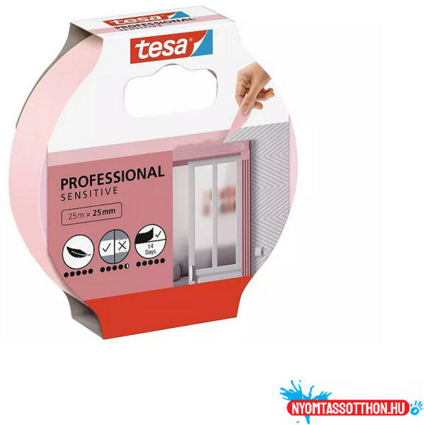 Maszkolószalag rózsaszín 25mmx25m Tesa A tesa ® Perfect szenzitív festőszalag egy extra vékony papír maszkolószalag, amelyet kifejezetten az érzékeny felületeken való biztonságos használatra terveztünk. Használja precíz szélek készítéséhez a festett területek és a drága tapéták között. Ez az érzékeny felületekhez alkalmas maszkolószalag oldószermentes ragasztóbe