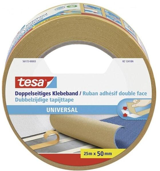 A tesa® univerzális kétoldalas szalag egy öntapadó padlószőnyeg ragasztó. Számos más alkalmazáshoz is megfelelő, például szőnyegek rögzítése, kézműveskedés és dekorálás. Ez a sokoldalú szalag sokféle szilárd, sík és sima felületű anyagon képes tapadni. A gyors és könnyű rögzítés érdekében kézzel könnyen téphető, melynek köszönhetően ideális kétoldal