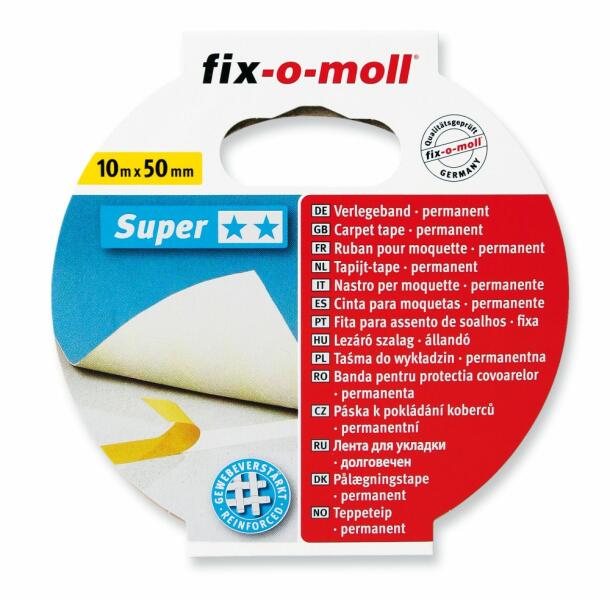 Fix-o-moll Super kétoldalú öntapadó szőnyegragasztó szalagok Super: fokozott igénybevételhez, szöveterősített kivitel Hosszúság: 10 m Szélesség: 50 mm