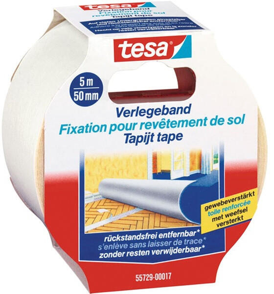 Tesa 55729 50mmx5 m visszaszedhető szövet kétoldalas ragasztószalag - Mindenfajta szőnyeg és PVC padlóburkolatra alkalmas - Sokféle felülethez tapad, és nyom nélkül eltávolítható - Kétoldalú tapadás - Textilerősítésű - Kézzel téphető - Biztos és azonnali tapadás - Típus: 50 mm x 5 m szövet visszaszedhető