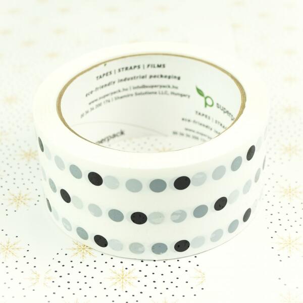 A Superpack S45 fehér alapon fekete pöttymintás verziója amellett, hogy praktikus, még a legunalmasabb csomagolást is feldobja. Kifejezetten esztétikusan mutat natúr kraft dobozokon, csomagolóanyagokon. Csendes letekerésű, akril ragasztóréteggel ellátott általános célú ragasztószalag. Kiváló eszköze lehet akár az iroda, akár a csomagoló terület zajterhelésének azonnali