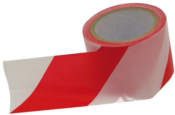 jelölő szalag, piros-fehér; 75mm×100m, polietilén (kordonszalag)