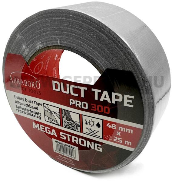 Abraboro DUCT TAPE szöveterősített ragasztószalag 48 mm x 25 m, ezüst Általános célokra használható ultra erős ragasztószalag. Keresztirányban könnyen téphető, hosszanti irányban kimagaslóan nagy szakítószilárdsággal rendelkezik. A speciális receptúra alapján készült ragasztóanyag nagy tapadást biztosít a legkülönbözőbb felületeken. Rendkívüli időjárási visz