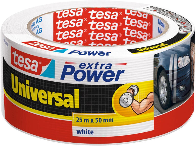 RAGASZTÓSZALAG EXTRA POWER SZÖVETSZALAG FEHÉR 50MMX25M TESA A tesa extra Power Universal javítószalag egy prémium kategóriás univerzális szalag javításokhoz, barkácsoláshoz, rögzítéshez, kötegeléshez, megerősítéshez, jelöléshez és még sok minden máshoz. Ez az extra erős javítószalag kézzel könnyen téphető, mégis kiemelkedő tapadást és szakadásállóságot nyú