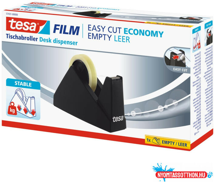 Ragasztószalag adagoló 25mmx66m, asztali Tesa Economy fekete tesa® Easy Cut Economy asztali csomagolószalag vagy ragasztószalag adagoló ötvözi a klasszikus kialakítást és a bevált funkcionalitást