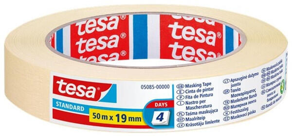 Tesa 05085 19mmx50 m univerzális festő-, mázolószalag Sokoldalú, általános célú festőszalag az alapvető festési-mázolási munkákhoz Kisebb kötegelésekhez, ragasztásokhoz, csomagoláshoz és jelöléshez Erős tapadás a legtöbb felületen Beltéren 48 órán belül nyom nélkül eltávolítható Kézzel letéphető, nedvességálló