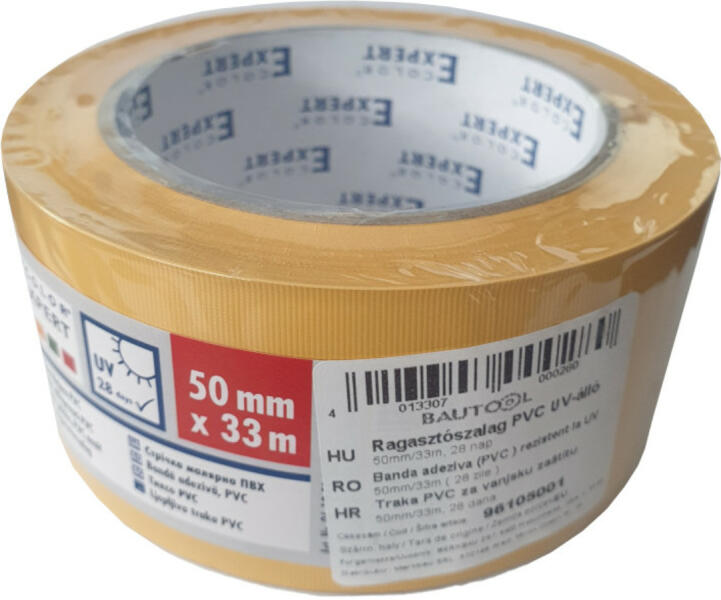 UV álló ragasztószalag festésnél, burkolásnál és kőműves munkáknál előforduló takarási munkákhoz. A ragasztószalag 28 napig képes ellenállni az UV sugárzásnak. Amennyiben ez idő alatt nem távolítjuk el a szalagot, úgy annak ragasztóanyaga rászáradhat a felületre, melyet miután már csak erős oldószerrel lehet majd eltávolítani. Az erős oldószerek azonban kikezdh