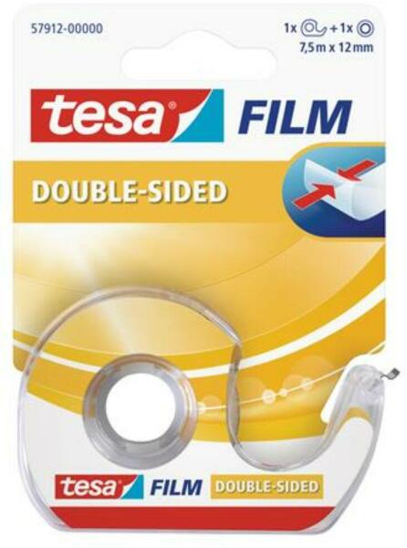 Ragasztószalag, kétoldalas, adagolón, 12 mm x 7,5 m, TESA Tesafilm (TE57912) A tesafilm® kétoldalas ragasztószalag egy speciális öntapadó szalag, melyet kifejezetten papír, karton és fotók ragasztására terveztek. -átlátszó -PVC- és oldószermentes -a polipropilén fólia a szalag mindkét oldalán oldószermentes ragasztóbevonattal van ellátva, amely rendkívül öregedésáll